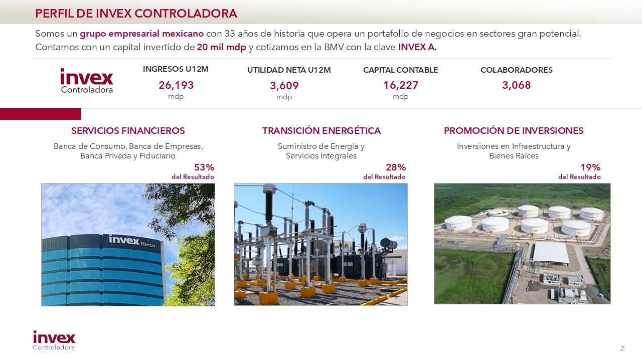INVEX Grupo Financiero es una institución financiera mexicana con una participación relevante en Banca de Empresas, Banca de Consumo y Banca Privada. Ofrece soluciones a inversionistas y empresas que optan por satisfacer sus necesidades financieras respaldados por sus equipos especializadas en cada una de las divisiones. La cercanía con cada uno de sus clientes le permite construir relaciones de valor y sobre todo entender sus necesidades con precisión.